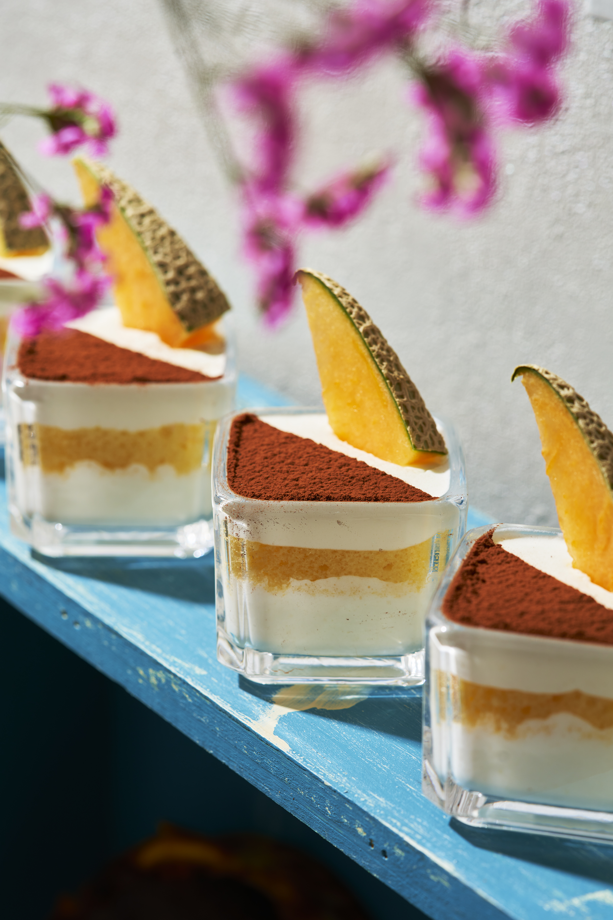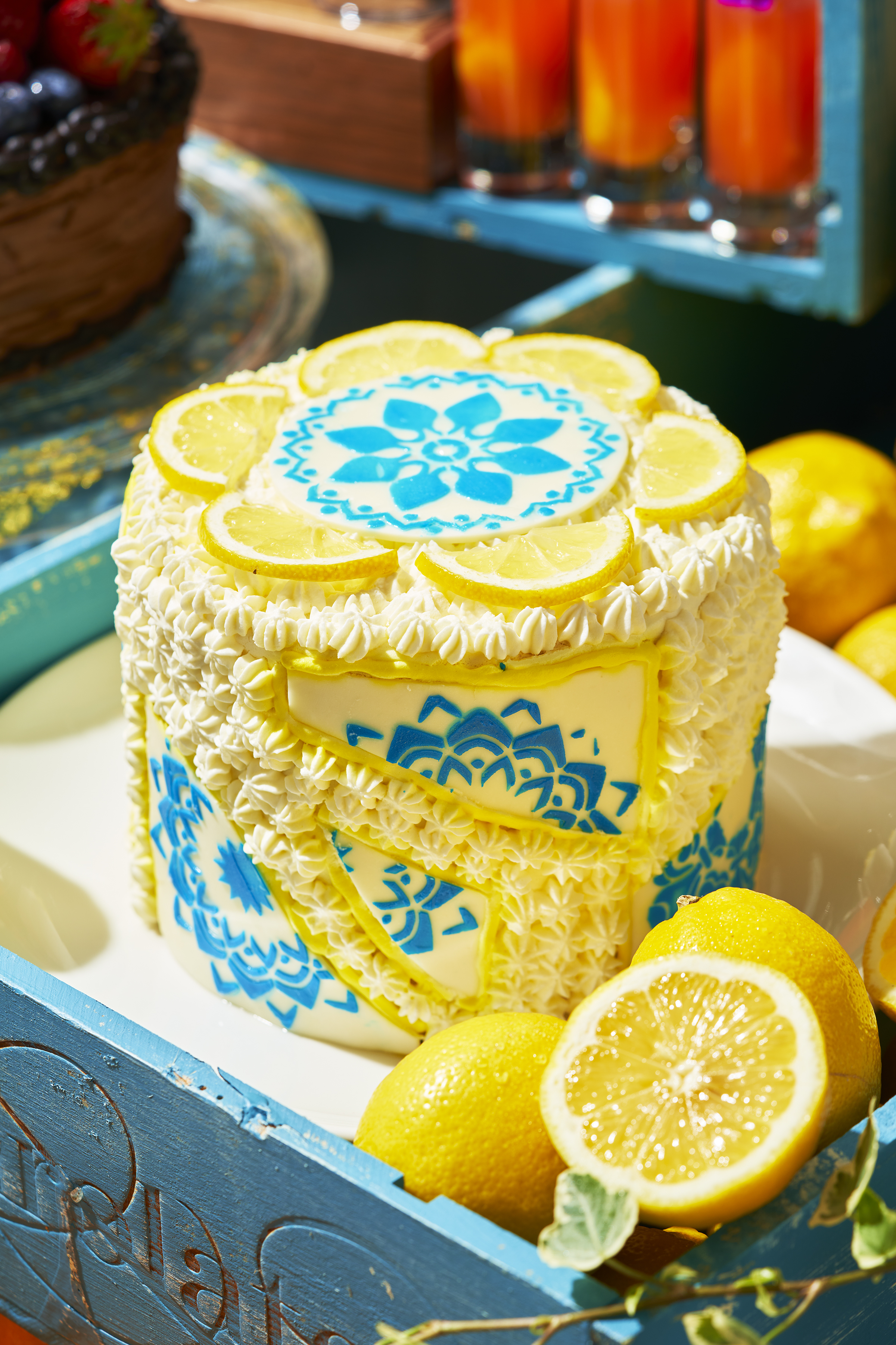 スイーツは、マルシェの風景を再現したものや、伝統的なスイーツなど13種類をご用意。マルシェでお買い物をするバスケットを再現したチョコレートケーキ「Plaisir(プレジール) ~バスケットケーキ~」やシチリアタイルからインスピレーションを受けたパティシエの技が光るレモンケーキ「Artisan(アーティシャン) ~タイル模様ケーキ~」、地中海の色とりどりの新鮮なフルーツをイメージして作られた華やかなショートケーキ「Grâce(グレース) ~フルーツ断面ケーキ~」。他にも、スペインの伝統的スイーツや地中海の象徴とも言える青い海や眩しい太陽を表現したスイーツなど見た目も楽しめ、地中海の雰囲気を存分に味わっていただけます。