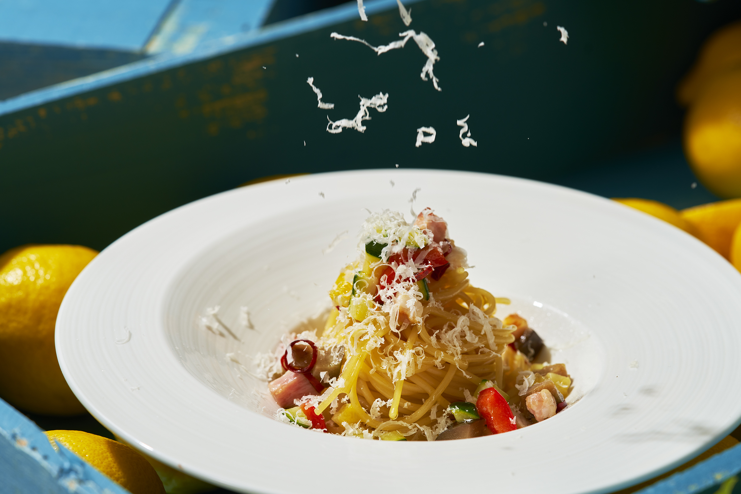 料理はフランスやイタリアをはじめ、チュニジア、スペイン、ギリシャなど、地中海の様々な地域の伝統料理が登場。その中でもシェフが特におすすめする料理は『白身魚のフリットとスコルダリア』、『ズッパ・デ・ペッシェ』、『豚肩ロース肉のロースト アリッサ風味』。また、目の前で仕上げる大人気のライブキッチンでの出来立て地中海料理もぜひ、堪能ください。