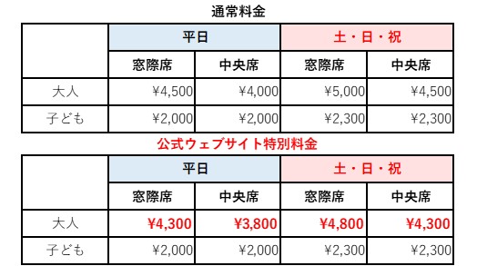 ※公式ウェブサイト特別料金はお子様対象外とさせていただきます。