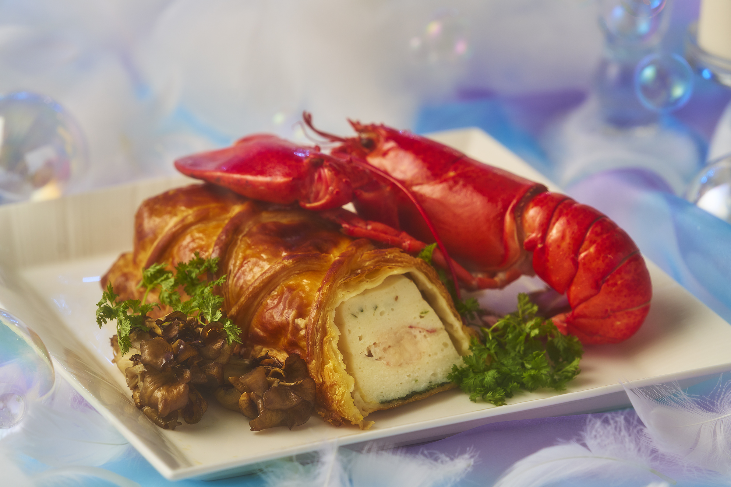 12月20日(土)~12月25日(木)はスイーツのラインアップはそのままに、クリスマス期間だけの特別メニューがビュッフェやライブキッチンに登場! トリュフのソースで仕上げた自家製ローストビーフに、骨付きチキンのグリル 粒マスタードソース、オマール海老を贅沢に使用したパイ包み焼きなど、クリスマスシーズンにぴったりの内容で、華やかなビュッフェをお楽しみいただけます。